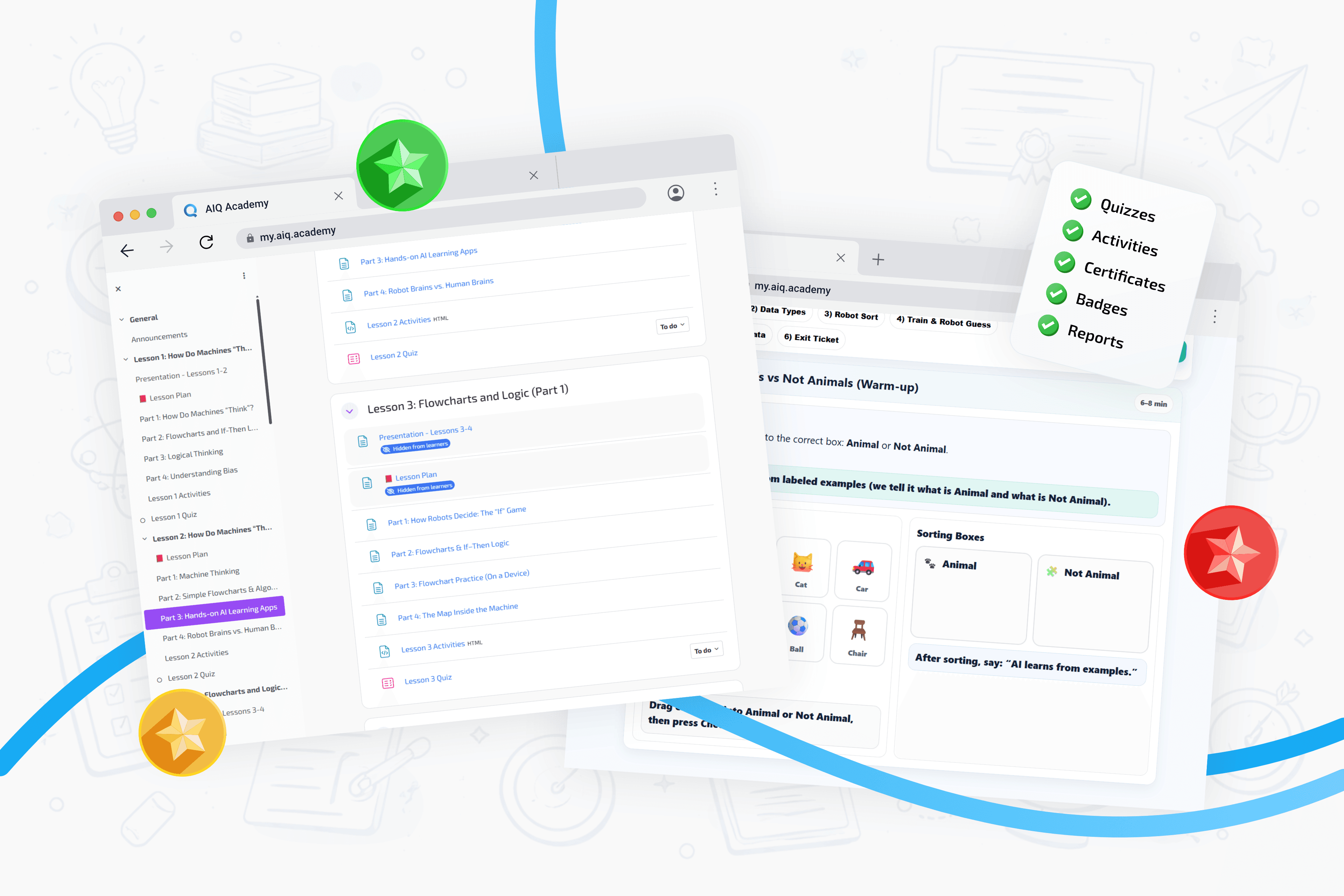 تُقدّم جميع دوراتنا التدريبية عبر الإنترنت من خلال منصتنا التفاعلية المتكاملة. يعتمد المعلمون على أكاديمية AIQ لتقديم دروس مثيرة في مجالات الأمن السيبراني، والذكاء الاصطناعي، والروبوتات، وأكثر من ذلك بكثير. تتضمن جميع الموارد التي يحتاجها الموظفون بما في ذلك خطط الدروس وعروض الصفوف.